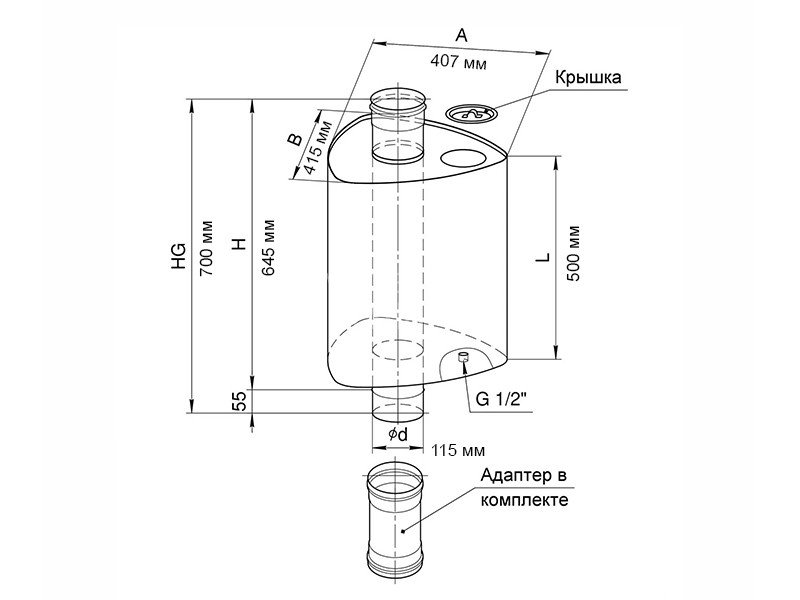 Установка бака производится "по конденсату". Нижняя часть трубы бака теперь разъемная. Проверенный честный объём бака. Адаптер М-М 235 мм в комплекте!