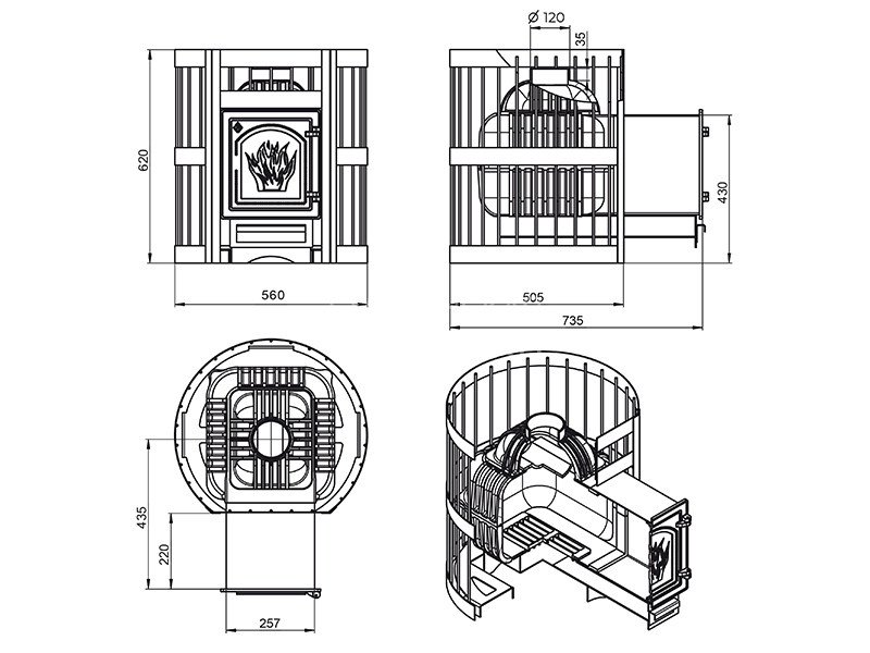 Диаметр дымохода: 120 мм
