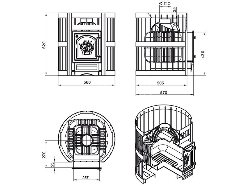 Материал топки: Жаростойкий чугун (ГОСТ 1412-85)