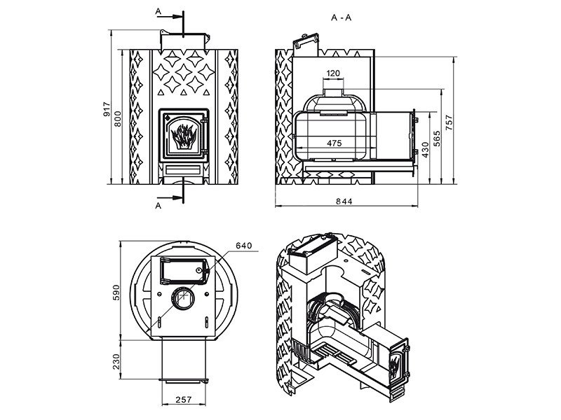 Диаметр дымохода: 120 мм