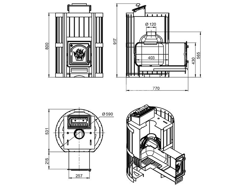 Диаметр дымохода: 120 мм