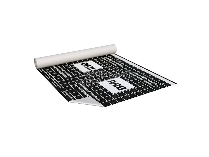 Четырехслойная армированная паропроницаемая мембрана из нетканого полипропилена, с функциональным водонепроницаемым слоем и продольной самоклеящейся полосой на одной стороне полотна. Полоса защищена антиадгезионной полиэтиленовой пленкой, которая удаляется в процессе монтажа.