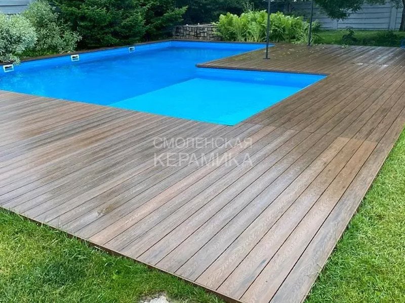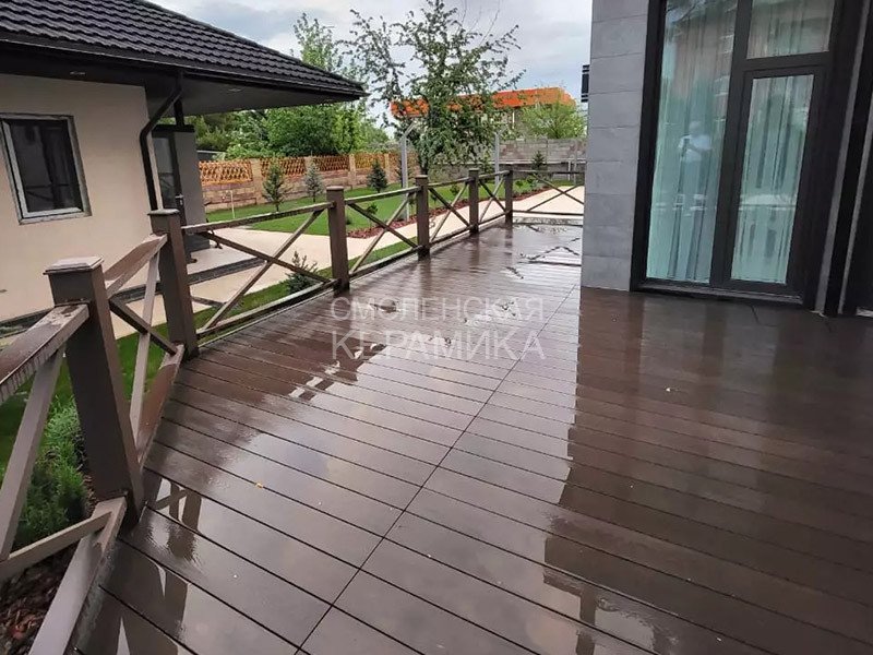 Водонепроницаемость — декинг может переносить длительное воздействие дождя, снега, он не разбухает, не деформируется и не гниет.