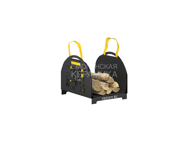 Прорезной узор на боковых поверхностях дровницы отлично сочетается с другими аксессуарами Везувий в стиле «Русский лес». Дровница будет хорошо выглядеть вместе с каминным набором, часами и другими деталями интерьера в этом приятном дизайне. Дровница Везувий «Русский Лес» D430B рассчитана на применение с сумкой для переноски дров Везувий S 620, которая поставляется в комплекте. Сумка специальными петлями в развёрнутом виде фиксируется на прорезных ручках дровницы.