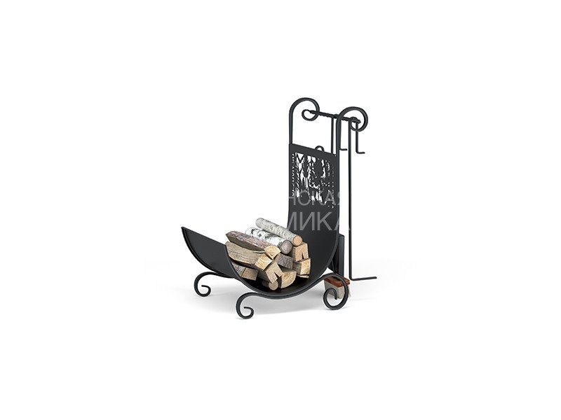 В комплект входят: дровница, кочерга, совок и щётка для ухода за печью, камином или костроовй чашей.