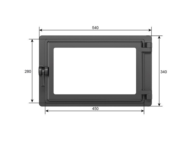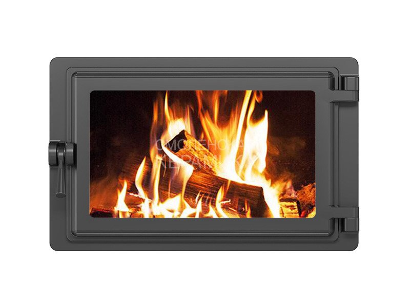 Дверь изготовлена из чугуна по ГОСТ 1412-85, конструкция двери – герметичная. Полотно двери выполнено в виде широкого прямоугольника, что в сочетании с остеклением двери позволяет удобно контролировать процесс горения или приготовления пищи.
