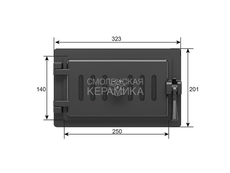 Двери изготовлены из качественного чугуна по ГОСТ 1412-85 с глухим полотном. Ручки дверей также сделаны из чугуна.