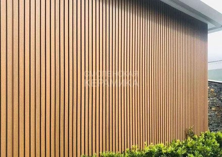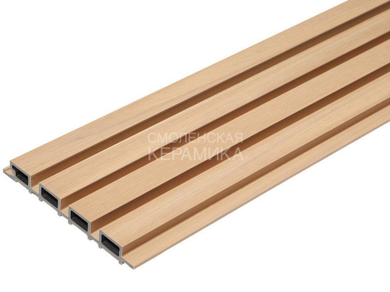 Облицовочные реечные панели CM WALL, в формате вертикальных реек, цвет - экзотическая сосна. В них гармонично сочетается, элегантность, дизайн и долговечность! Реечные панели из древесно – полимерного композита WAll созданы для оформления современных дизайнерских решений, оформлений уличного пространства, а также в отделке интерьеров загородных домов и квартир. Этот инновационный продукт для облицовки, объединяет красоту и долговечность, что делает его отличным решением для наружной и внутренней облицовки стен и потолка.