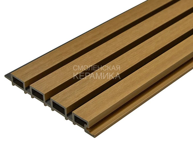 Стеновые реечные панели CM WALL DUAL CAMEL (кэмэл), в формате вертикальных реек. В них гармонично сочетается, элегантность, дизайн и долговечность! Реечные панели из древесно – полимерного композита CM WAll DUAL созданы для оформления современных дизайнерских решений, оформлений уличного пространства, а также в отделке интерьеров загородных домов и квартир. Этот инновационный продукт для облицовки, объединяет красоту и долговечность, что делает его отличным решением для наружной и внутренней облицовки стен и потолка.