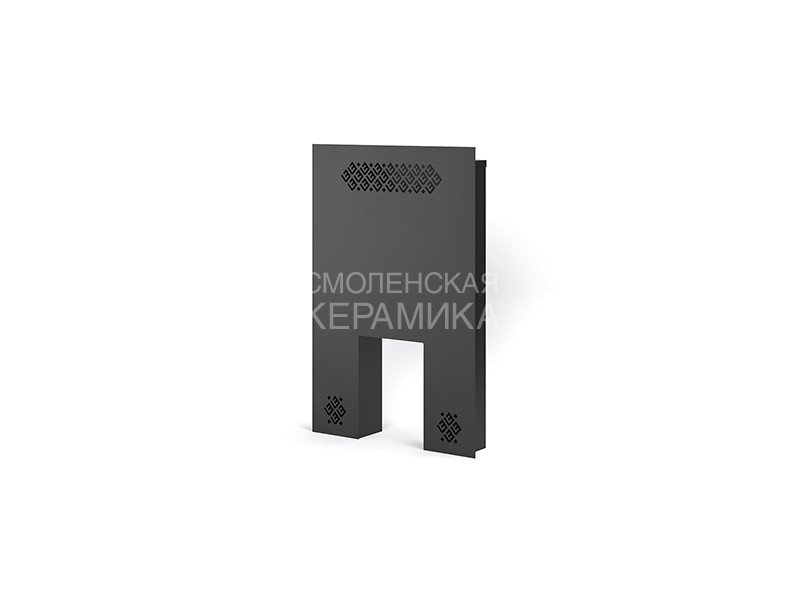 Выполненный из стали толщиной 1-2 миллиметра фронтальный защитный экран выполняет функцию эстетического обрамления топочного тоннеля печи и одновременно защищает смежные с печью поверхности от воздействия повышенных температур.