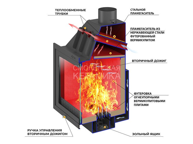 Материал футеровки топки: вермикулитовые плиты, 30 мм