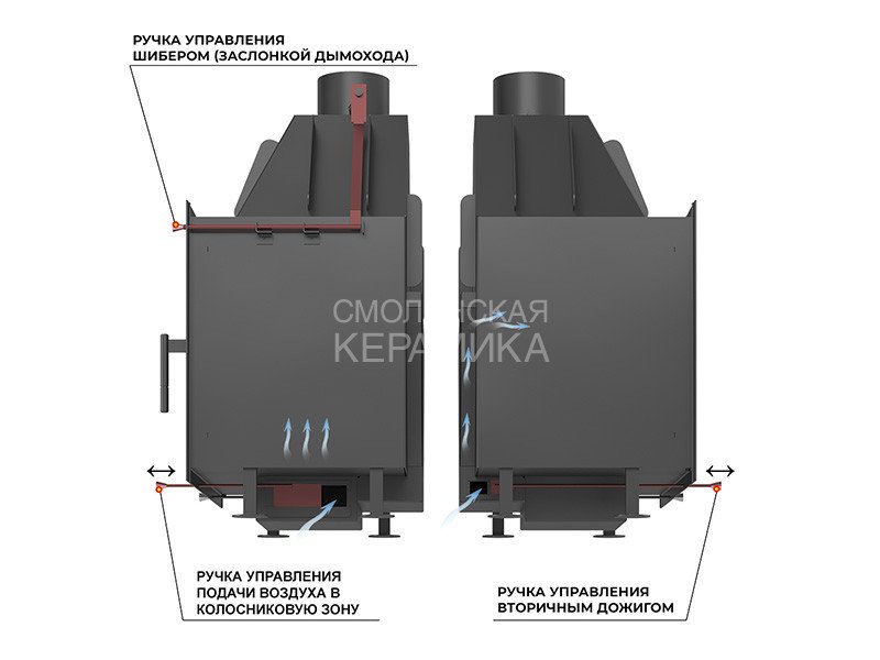 Материал футеровки топки: вермикулитовые плиты, 30 мм