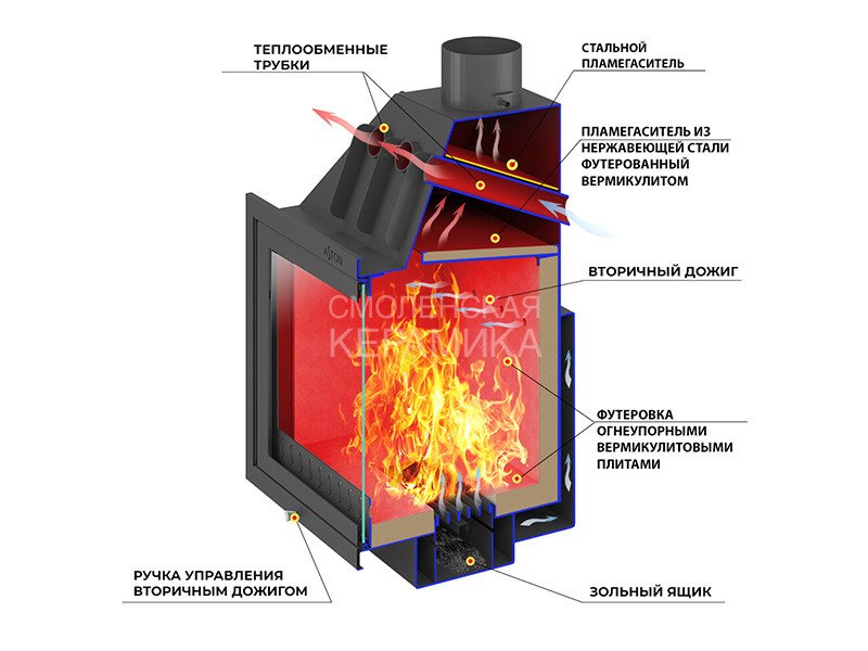 Материал футеровки топки: вермикулитовые плиты, 30 мм