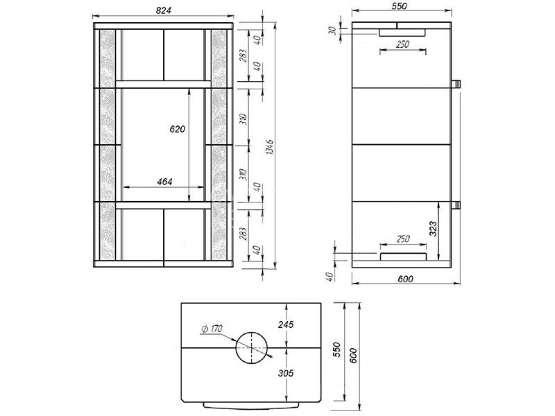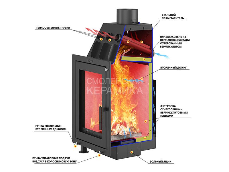 Материал футеровки топки: вермикулитовые плиты, 30 мм