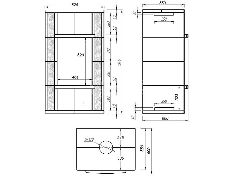Материал футеровки топки: вермикулитовые плиты, 30 мм