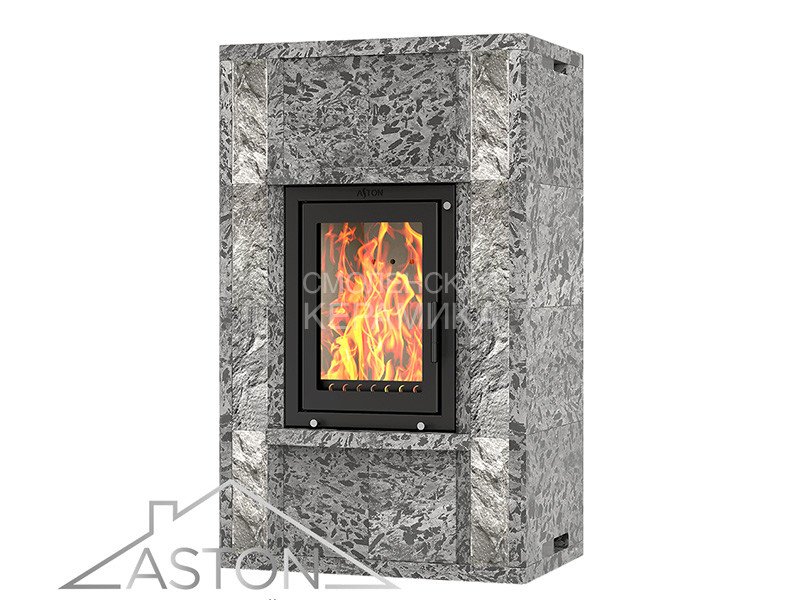 Облицовка сделана из натурального камня, который быстро прогревается, хорошо держит тепло и обладает свойством медленно и равномерно отдавать энергию в окружающее пространство.