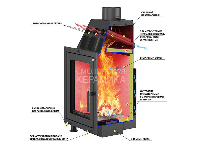 Материал футеровки топки: вермикулитовые плиты, 30 мм