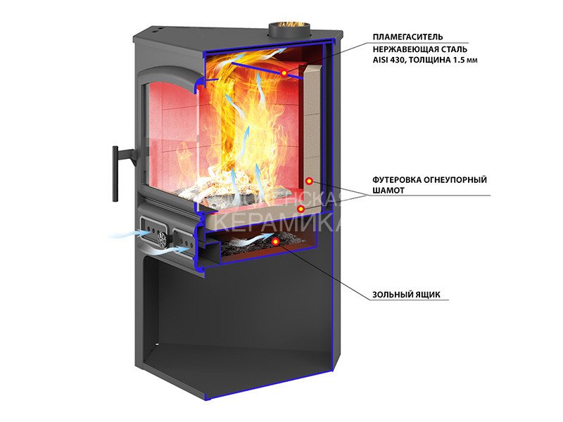 Все элементы печи-камина ЭТНА сделаны и зособо прочной стали марки 09Г2С. Эта
