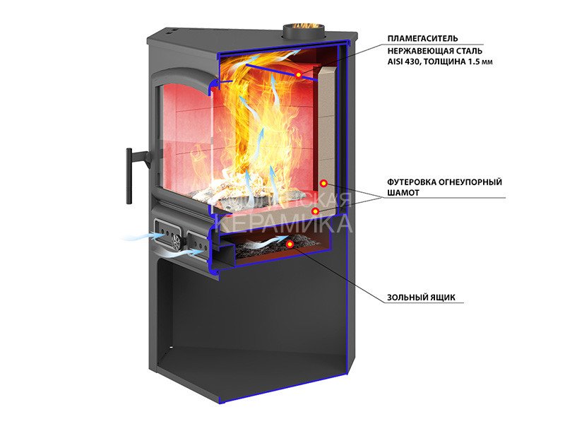 Все элементы печи-камина ЭТНА сделаны и зособо прочной стали марки 09Г2С. Эта