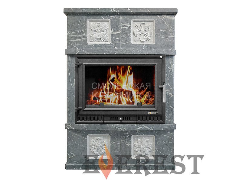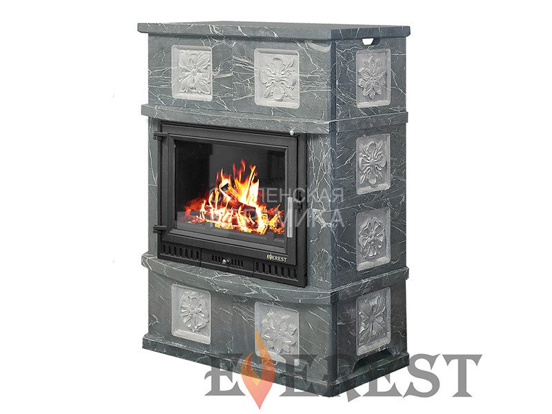 Камин EVEREST «PILLAU» Талькохлорит представляет собой комплект из топки EVEREST 700 и наружной облицовки из натурального камня талькохлорита с резными узорными элементами.
