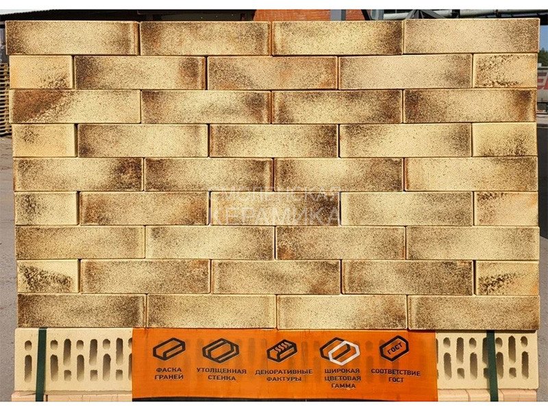 Для создания кирпича ТМ «Строма Дизайн» производитель уделил внимание выбору цветовой палитры, комбинации оттенков и формированию объемного рисунка с дополнительным инкрустированием / торкретированием. В процессе производства нанесенный на сырец декор обжигается и прочно спекается с керамической офактуренной основой кирпича, гарантируя облицовочному материалу долголетие и устойчивость к внешнему воздействию.