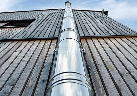 Двустенный дымоход или сэндвич представляет собой конструкцию, состоящую из двух труб разного диаметра (внешней и