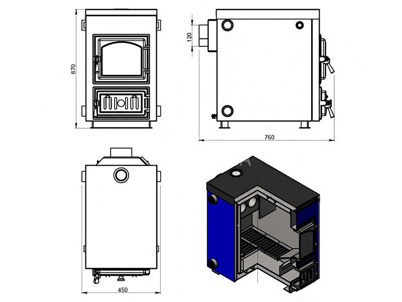 Диаметр дымохода: 120 мм