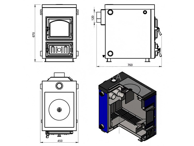 Диаметр дымохода: 120 мм