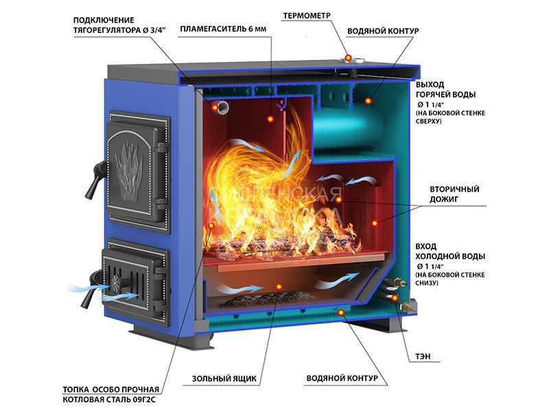 Объем топочного пространства: 54 л