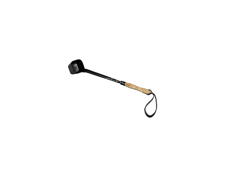 Металлический ковш с удобной ручкой из натурального дерева и кожаной петлёй. Длина 55 см.