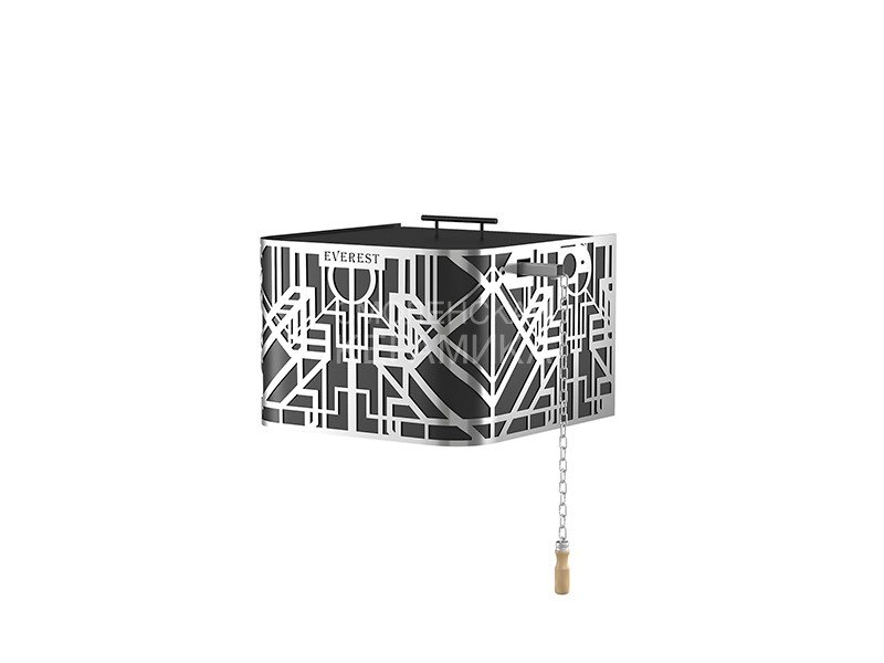 Обливное устройство ЭВЕРЕСТ представляет собой бак из нержавеющей стали, автоматически наполняемый водой. Количество воды в баке регулируется с помощью клапана подачи воды. Максимальный объём воды в баке – 15 литров.Бак обливного устройства устанавливается на высоте 2-2,2 метра. Вода для облива после парилки подаётся с помощью рукоятки на цепи. Широкое основание бака с большим количеством мелких отверстий обеспечивает оптимальный по размеру и интенсивности поток воды.Равномерная подача большого объёма воды обеспечена за счёт трех выпускных клапанов, одновременно открывающихся при потягивании рукоятки вниз.