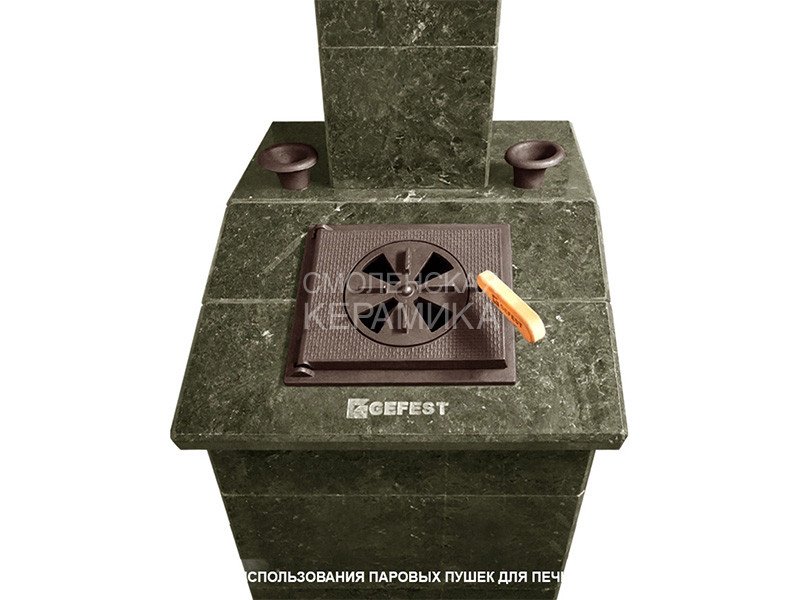Состоит из чугунной заливной горловины, комплекта фитингов и трубки из нержавеющей гофрированной стали. Предназначена для подачи воды на нижние слои заряда каменки. Гофрированная гибкая труба позволяет устанавливать её в любом положении внутри каменки. Крепление пушек происходит в боковых стенках чугунного короба закрытой каменки. Использовать можно до 2-х устройств устанавливая их в каждую боковую стенку короба.