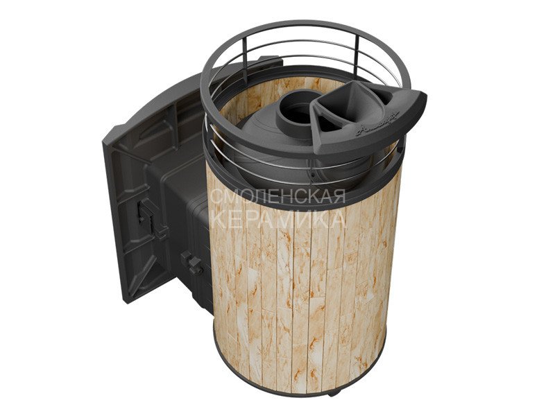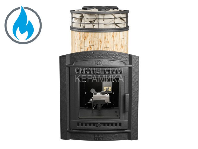 Печь банная «Атмосфера L» Окаменевшее дерево ламель+сетка с газовой горелкой
