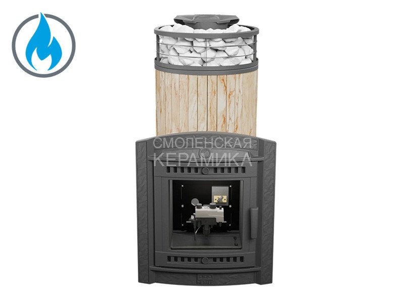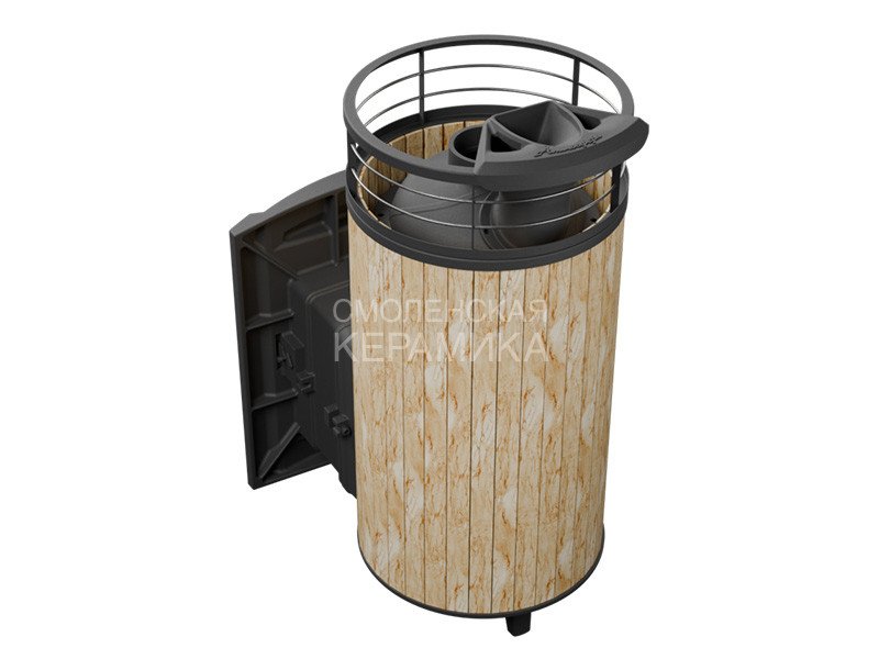 Модель с увеличенной каменкой и повышенной производительностью. Ламели по периметру внешней каменки не только обладают хорошими теплонакопительными свойствами, но и придают печи оригинальный внешний вид