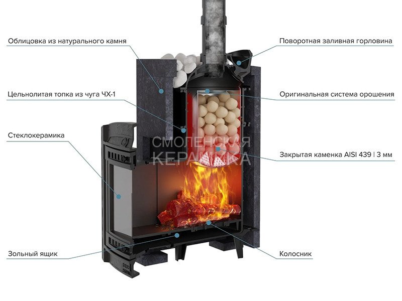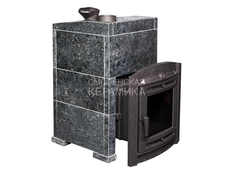 Модель печи в стильной и практичной облицовке из «Пироксенит». За счет использования несущих брусков, состоящих из цельного камня, теплоёмкость печи увеличивается на 50%. Конструкция просто собирается и позволяет легко заменить любую деталь в случае необходимости. Цена и КПД такой облицовки отличаются оптимальным соотношением.