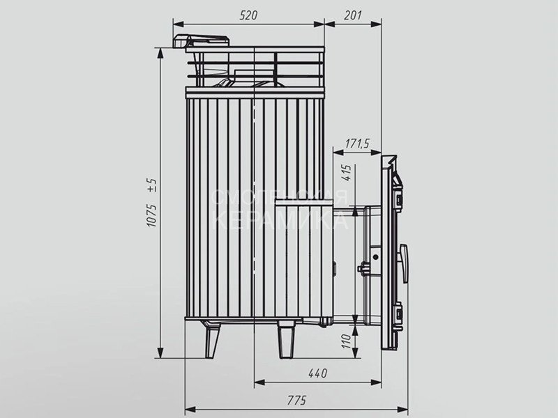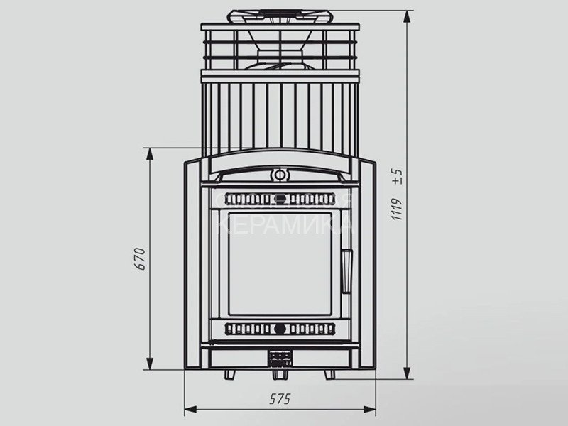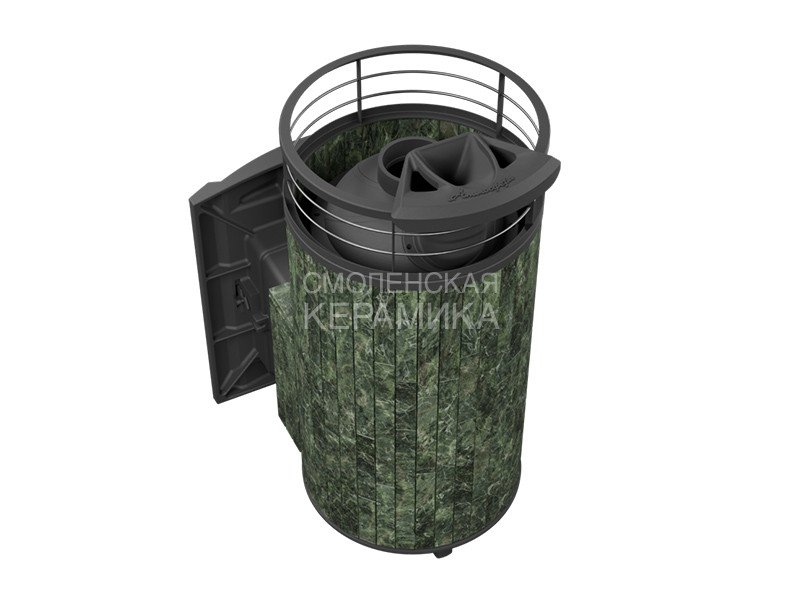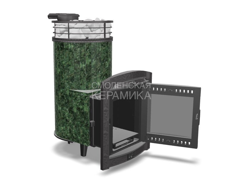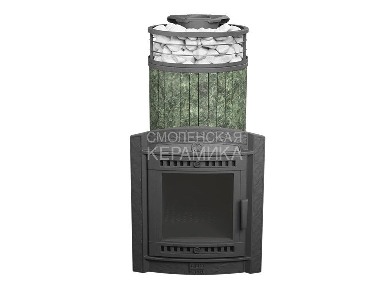 Модель с увеличенной каменкой и повышенной производительностью. Ламели по периметру внешней каменки не только обладают хорошими теплонакопительными свойствами, но и придают печи оригинальный внешний вид.