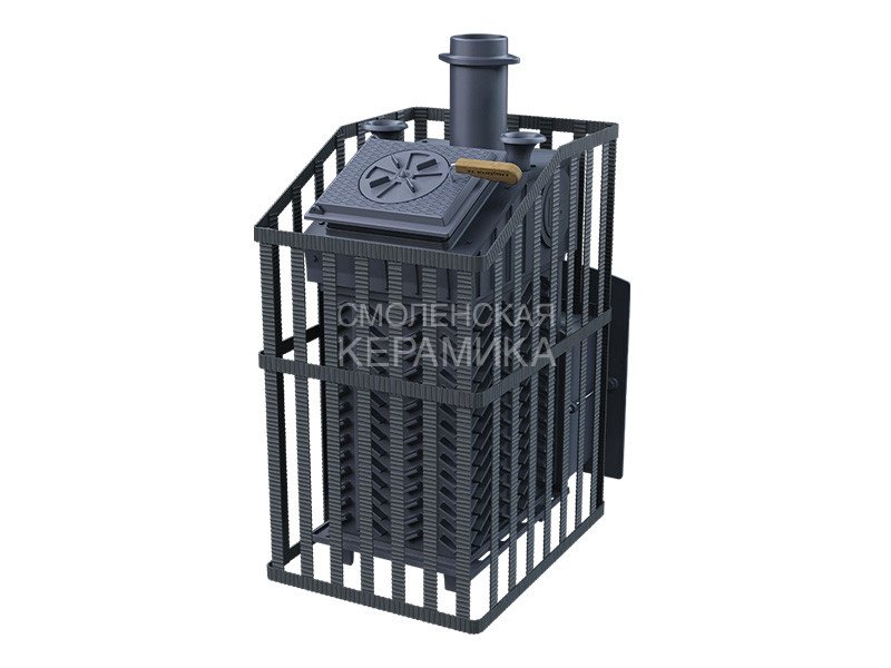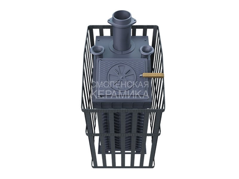 GFS ЗК 25 (П)2 Ураган - расширенный комплект печи в сетке. Максимально приближенный вариант печи для режимов русской парной, имеющий непосредственно закрытую чугунным коробом каменку, дверцу для пара с ручкой из бука. Печь легко модернизируется до полноценной печи предназначенной для Русской бани путем замены стальной сетки на каменную облицовку без демонтажа дымохода.
