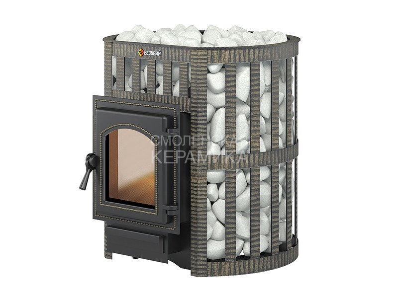 Банная чугунная печь Легенда Ковка 16 (270) укомплектована чугунной герметичной дверцей Везувий 270 с жаропрочным стеклом «SCHOTT ROBAX». Конвекционно-вентилируемый кожух "Ковка" изготовлен из металлической текстурированной полосы покрашенной термостойкой краской и покрытая патиной «Бронза».