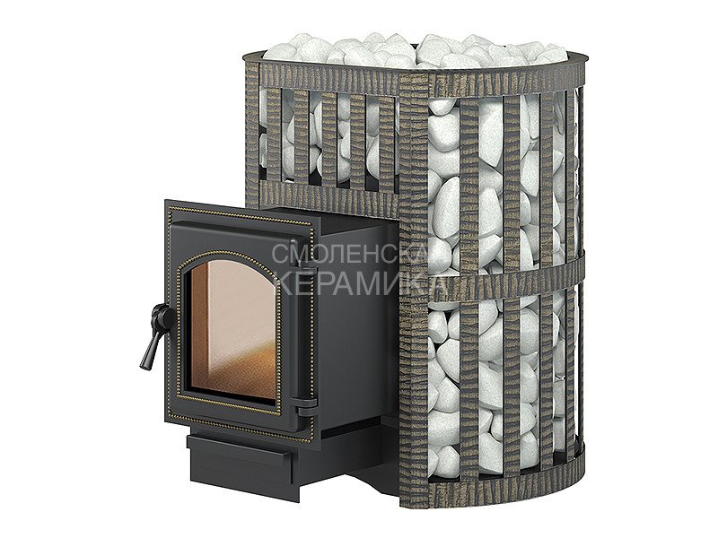 Банная чугунная печь Легенда Ковка 22 (270) укомплектована чугунной герметичной дверцей Везувий 270 с жаропрочным стеклом «SHOT ROBAX». Конвекционно-вентилируемый кожух "Ковка" изготовлен из металлической текстурированной полосы покрашенной термостойкой краской и покрытая патиной «Бронза».