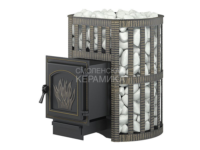 Банная чугунная печь Легенда Ковка 22 (270) укомплектована чугунной герметичной дверцей Везувий 270 с жаропрочным стеклом «SHOT ROBAX». Конвекционно-вентилируемый кожух "Ковка" изготовлен из металлической текстурированной полосы покрашенной термостойкой краской и покрытая патиной «Бронза».