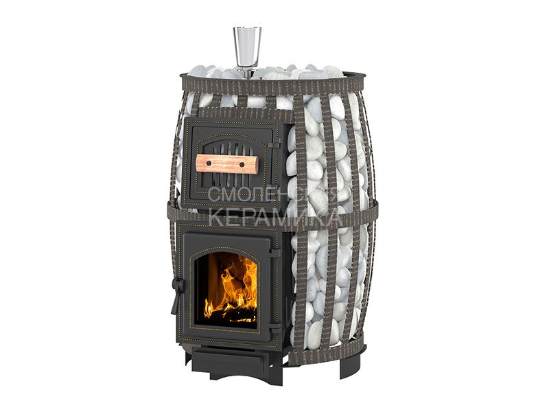 Печи «Легенда Русский пар 18» отличаются наличием закрытой каменки, в которой камни прогреваются до температуры 600°С, что позволяет создать в парилке наиболее благоприятный микроклимат, не пересушивая и не перегревая воздух. Вода подается в центральную самую горячую часть закрытой каменки через воронку, дверь закрытой каменки при этом должна быть приоткрыта для поступления мелкодисперсного пара в парное отделение. Все элементы топки отлиты из жаропрочного чугуна и соединены между собой с помощью болтового соединения через термостойкий шнур и герметик, а закрытая каменка изготовлена из жаростойкой высоколегированной 4 мм нержавеющей стали.