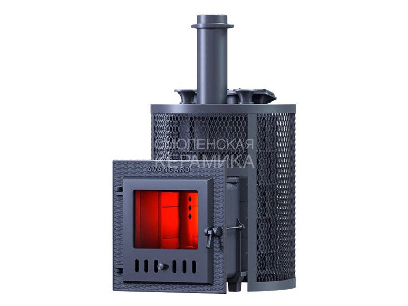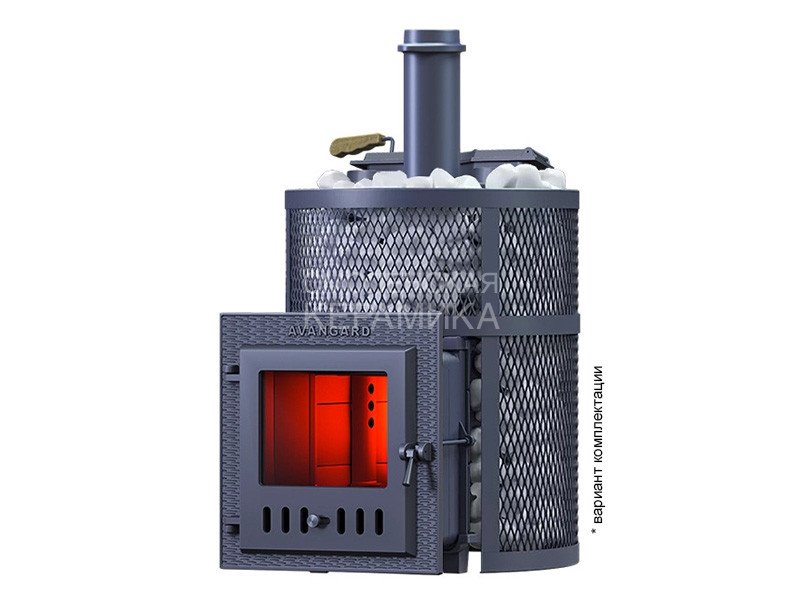 Авангард ЗК 25 (М) Ураган в круглой сетке. Чугунная банная печь в комплектации Ураган для парного помещения объемом 25 м³.