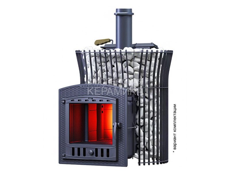 Масса пароиспарителя в печи AVANGARD 25– 42 кг, и он нагревается прямым контактом с пламенем. У пароиспарителя 2 поверхности с увеличенной рабочей площадью – снизу идёт нагрев огнём, а сверху поддаётся вода для пара. У печи уникальная, массивная каменка с теплонакопительными воронками, для получения легкого пара.