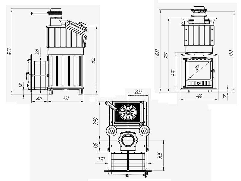 Чугунная банная печь для парного помещения объемом 24 м³.