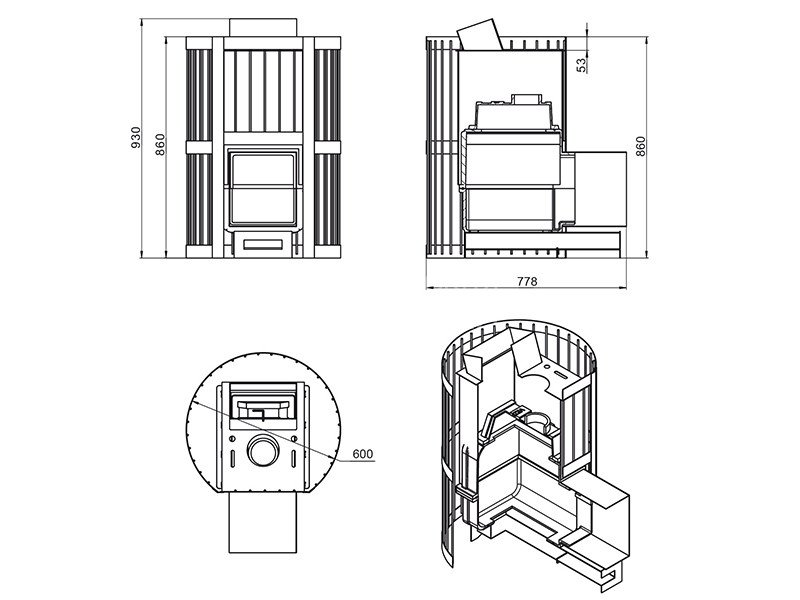 Вес камней в закрытой каменке: 30 кг