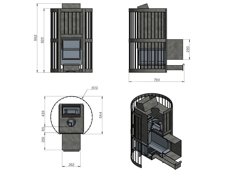 Материал закрытой каменки: сталь