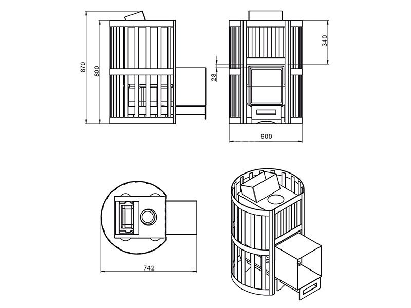 Банная чугунная печь Ураган Стандарт 16 (ДТ-4С) укомплектована чугунной негерметичной дверцей Везувий ДТ-4С с жаропрочным стеклом SHOTT ROBAX. Закрытая каменка изготовлена из стали и вмещает в себя не менее 60 кг камней Конвекционно-вентилируемый кожух "Стандарт" изготовлен из металлического прутка диаметром 6 мм, окрашен черной термостойкой краской.