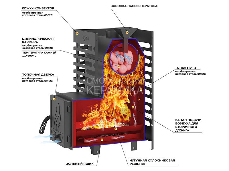 Материал закрытой каменки: Особо прочная котловая сталь