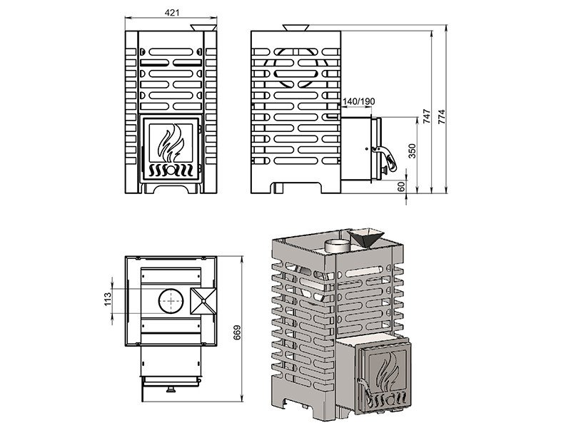 Толщина топки: 4 мм