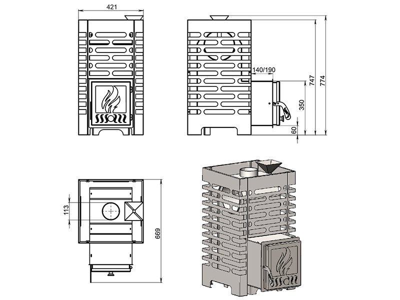 Толщина закрытой каменки: 4 мм